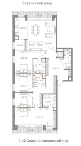 Из окон открывается вид на 2-й Спасоналивковский переулок и во двор. Пентхаус ориентирован на три стороны света. На втором уровне - эксплуатируемая кровля.