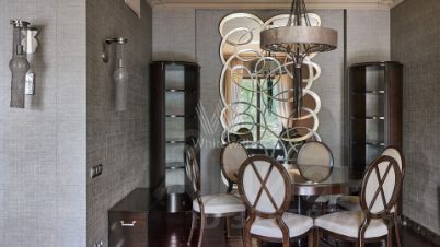 Квартира c тремя спальнями общей площадью 158 м² в комплексе "Дом Академии наук РАН" рядом с Нескучным садом и Андреевской набережной. В отделке натуральные материалы — дерево, камень, металл и кожа. Приточно-вытяжная система вентиляции Daikin. Техника Kuppersbusch, мебель из массива дерева, обеденная группа Selva, сантехника Antonio Lupi, Duravit и Hansgrohe. Из каждой комнаты спланирован выход на балкон.