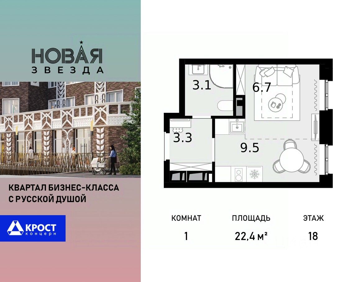 Продаётся 1-к квартира 22.4 кв.м. на 18-м этаже 22 этажного дома, корпус 6 - Резиденция "Хабаровск". Без отделки.