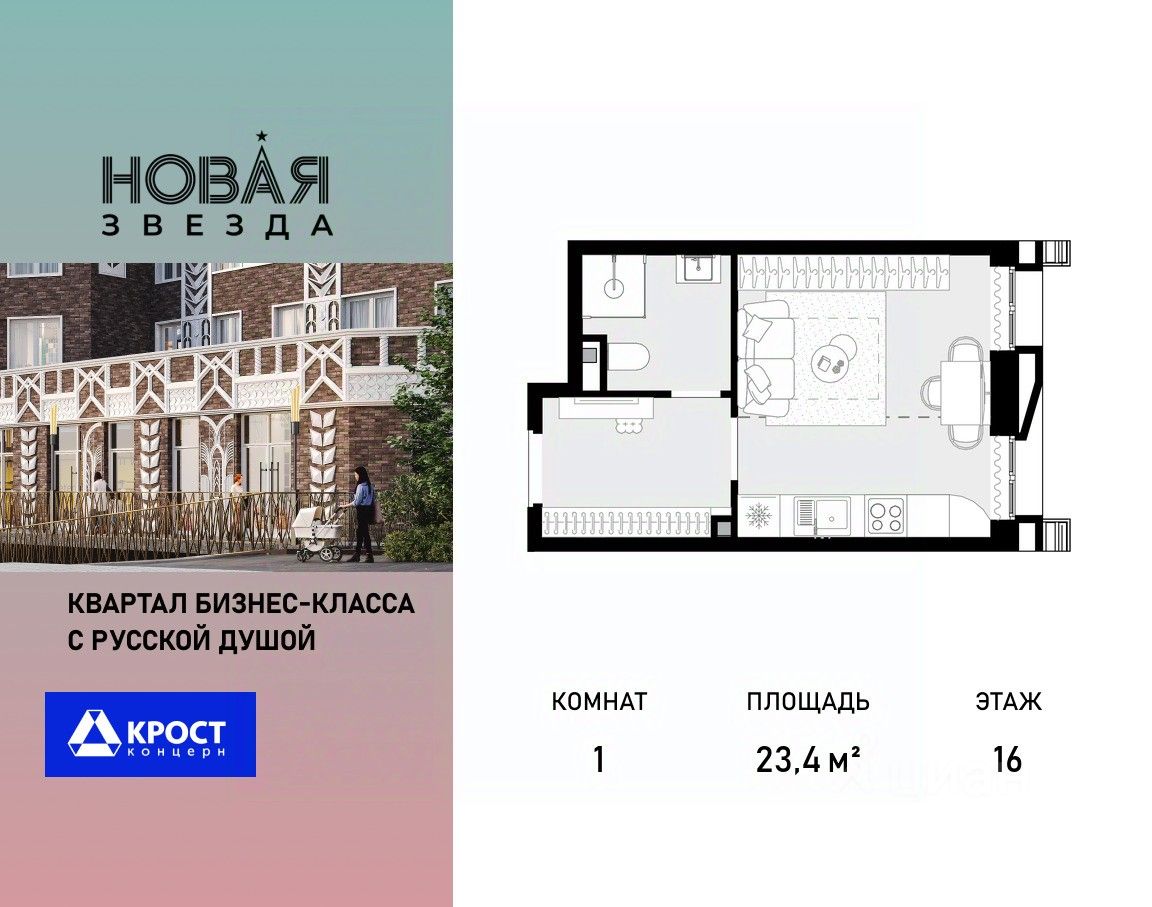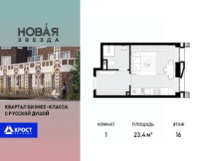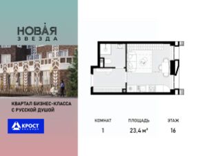 Продаётся 1-к квартира 23.4 кв.м. на 16-м этаже 21 этажного дома, корпус 1 - Резиденция "Вологда". Без отделки.