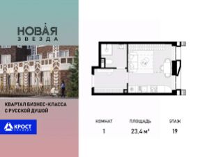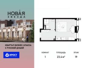 Продаётся 1-к квартира 23.4 кв.м. на 19-м этаже 21 этажного дома, корпус 1 - Резиденция "Вологда". Без отделки.