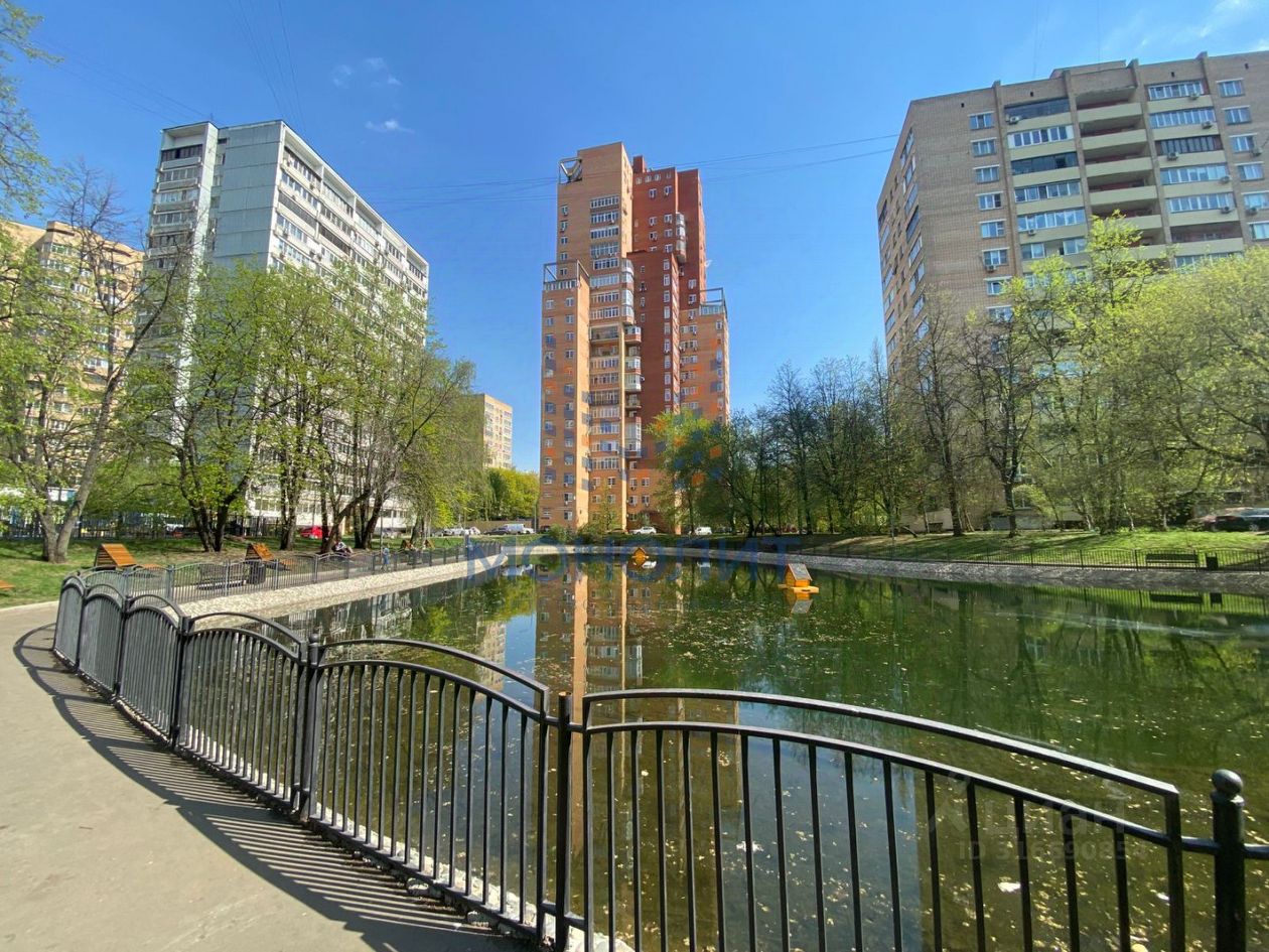 Полностью реконструированный в 2024 году пруд с дикими утками, рыбаками и прогулочной зоной в экологически наиболее благополучном Юго-Западном округе Москвы.