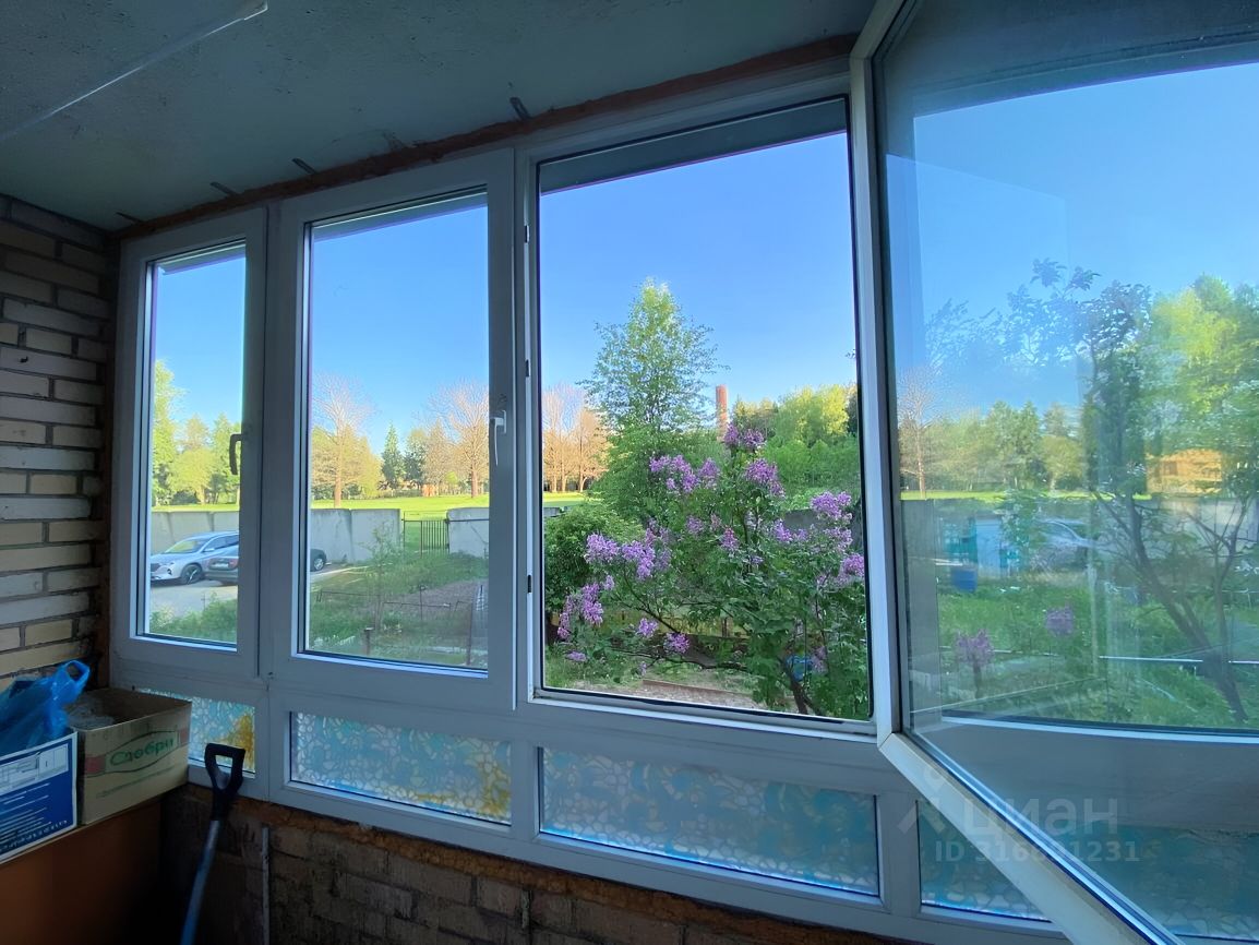 Дом кирпичный, за окном лес и территория советского дома отдыха.