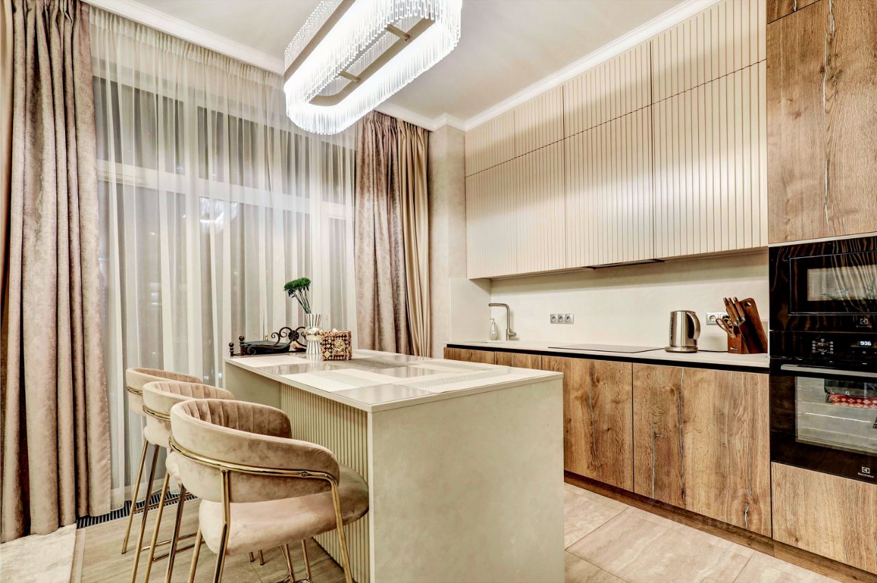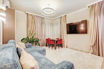 Квартира с дизайнерским ремонтом, где каждая деталь продумана до мелочей. Просторная кухня площадью 30 квадратных метров станет идеальным местом для семейных обедов и встреч с друзьями. В квартире два совмещенных санузла, что очень удобно для большой семьи. Окна выходят во двор, поэтому в квартире всегда тихо и уютно.