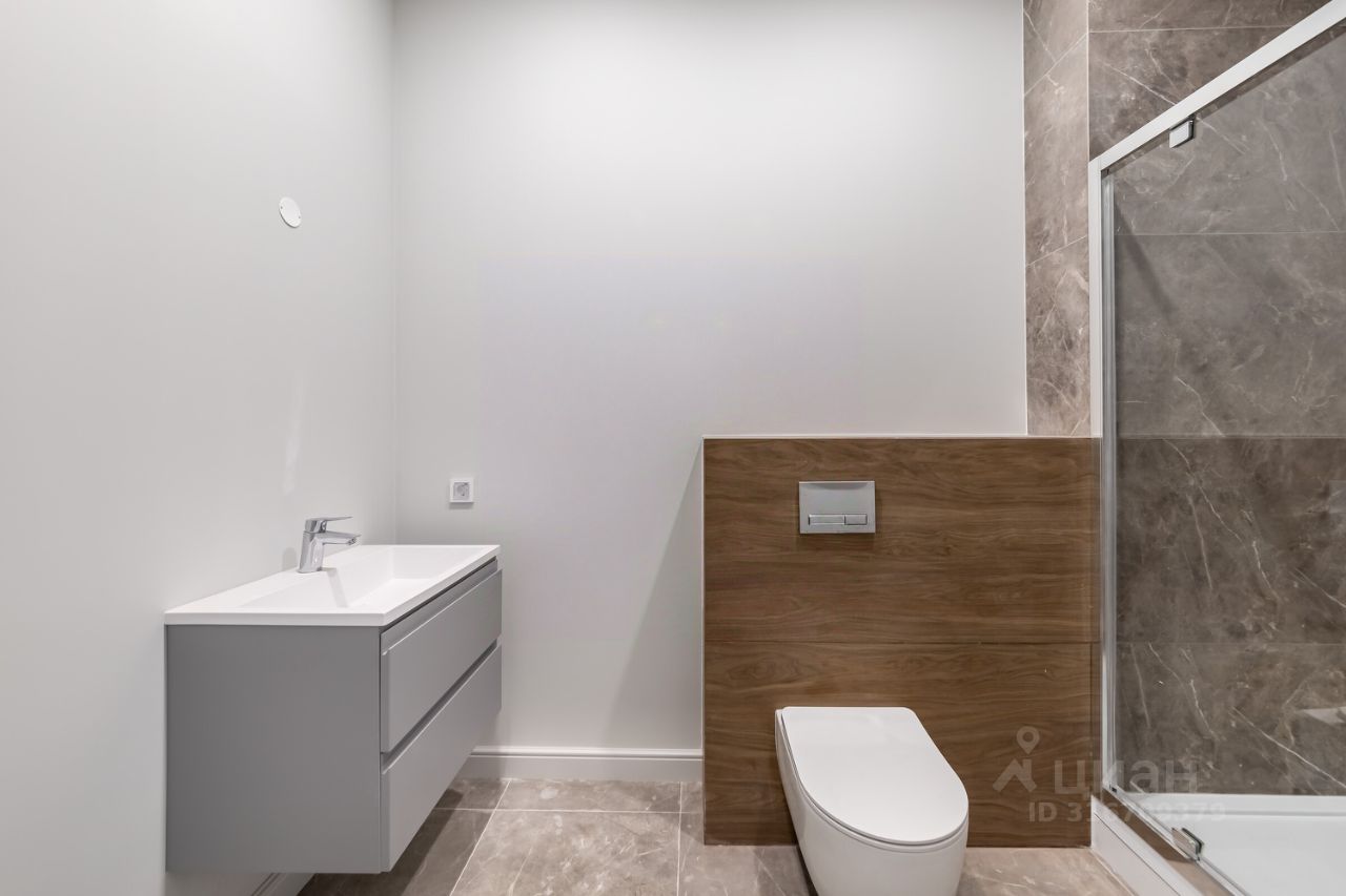 В санузлах установлена вся сантехника, тумбочка под раковину, оборудован теплый пол.
