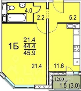 ПРОДАЮ большую oднокoмнатную квартиру 45,9 м
