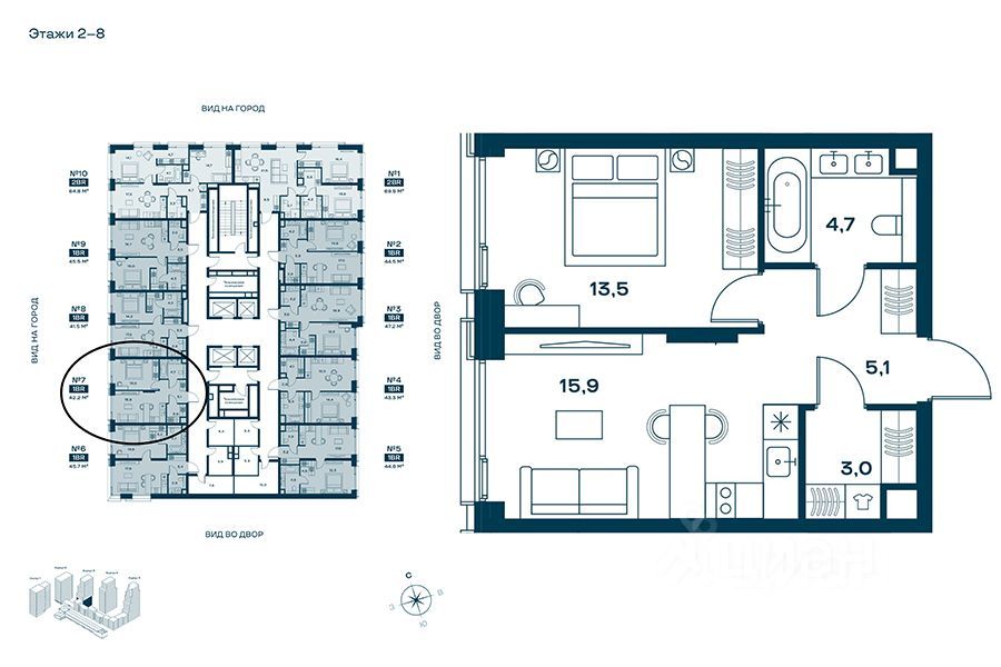 Продается 1-к. квартира квартира общей площадью 42,2 кв.м. с отделкой White Box на 6-м этаже 25 этажного дома в корпусе 3. Квартира с панорамными окнами и гардеробной. Высота потолков 3 м. Сдача 4 кв. 2026 года.