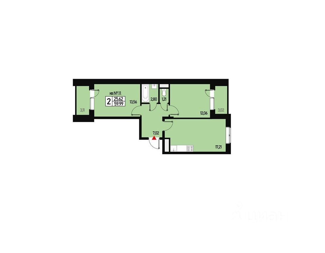 Это уникальная планировка квартиры, распашонка в евро-формате с большой кухней-гостиной и двумя отдельными комнатами, раздельным санузлом и двумя лоджиями!