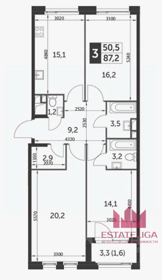 Свободная планировка позволяет сделать как трехкомнатную квартиру, так и четырехкомнатную.