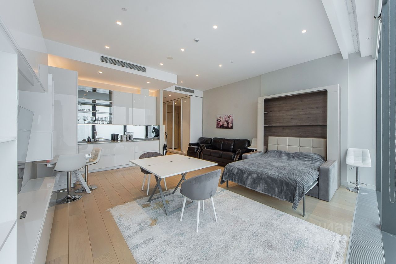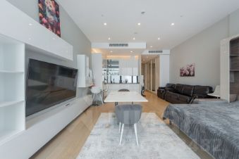 В апартаментах сделан современный дизайнерский ремонт. Просторная кухня оборудована всей необходимой техникой. Санузел совмещенный, выполнен в актуальном стиле.