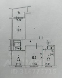 В квартире сделан косметический ремонт. Удобная планировка включает в себя три комнаты ( 16.7 кв.м. + 12 кв.м. + 9.2 кв.м.) и кухню площадью 8.3 кв. м. Из окон открывается вид как на улицу, так и во двор, поэтому в квартире всегда светло и уютно. Санузел раздельный, в наличии одна лоджия площадью 2,6 кв.м. и кладовка.