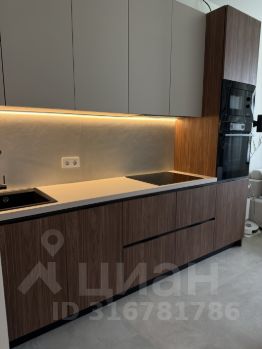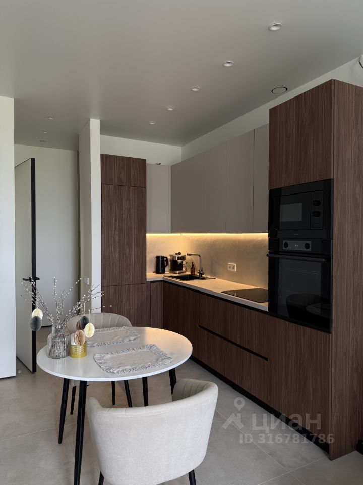 Кухня объединена с просторной гостиной, что создает комфортное единое пространство, идеально подходящее как для приема гостей, так и для уютной зоны отдыха с шикарным видом.