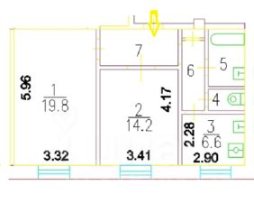 Жилая площадь- 34 м²; (19,8-14,2) с раздельными комнатами;