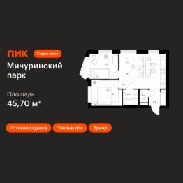 Продаётся 2-комн. квартира площадью 45,7 кв.м на 4 этаже 31 этажного дома (Корпус 4.3, Секция 2) проекта ПИК Мичуринский парк. Светлый просторный подъезд на уровне земли, функциональная планировка, большие окна, c отделкой.