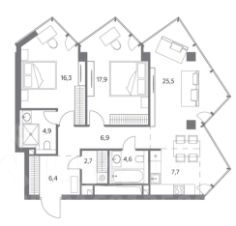 Видовая-просторная квартира, расположена на 17 этаже 27-этажного корпуса С1, в элитном жилом комплексе "Монблан" на Шлюзовой набережной.