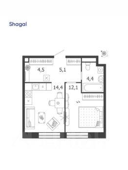 В продаже квартира 40,5 м2 в жилом комплексе бизнес класса Shagal, на берегу Москва-реки. Срок сдачи 4 квартал 2026.