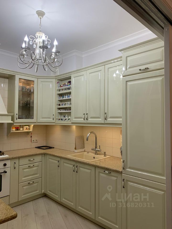 Общая площадь составляет 77 кв. м, кухня-гостиная 25 метров, 2 санузла, гардеробная, потолки 3 метра.