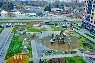 Виды в уютный тихий двор. Во дворе на пандусе оборудована детская и спортивные площадки. Из двора на лифте можно попасть в ПОДЗЕМНЫЙ ПАРКИНГ.