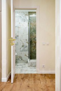 Квартира оборудована двумя гардеробными, укомплектованными мебелью, изготовленной по индивидуальному заказу.