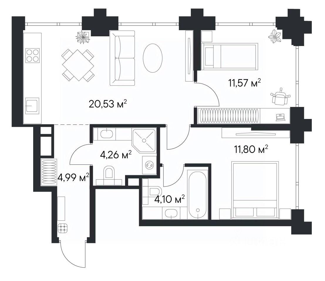 Продаётся просторная 2-комнатная квартира площадью 57,27 м², расположенная на 24 этаже корпуса 1.3 — идеальный выбор для тех, кто ценит эстетику высоты, панорамы города и современный премиум-класс.