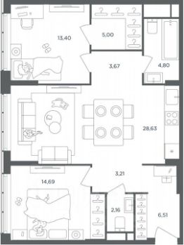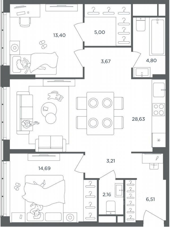 О КВАРТИРЕ: прекрасная 2-х комнатная квартира с отличными видовыми характеристиками. Функциональной планировкой предусмотрена кухня-гостиная, две изолированные спальни, гардеробная комната, два санузла. Окна ориентированы на обе стороны. Также есть возможность приобрести место в подземном паркинге за 7000000 млн.