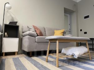 В квартире выполнен современный евроремонт, что придаёт ей стильный и комфортный вид. Пространство оформлено в открытой планировке, что создаёт ощущение простора и свободы. В апартаментах есть все необходимые условия для комфортного проживания: современная мебель и бытовая техника. Окна выходят во двор, поэтому в квартире всегда тихо и спокойно. Санузел совмещённый и оборудован качественной сантехникой.