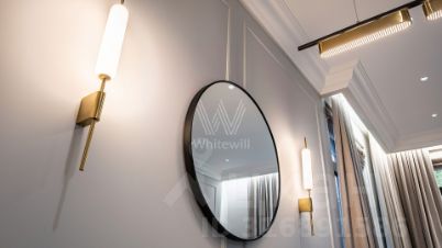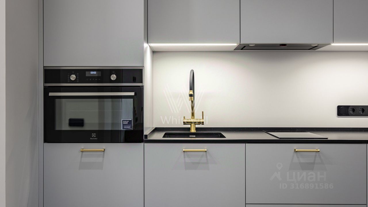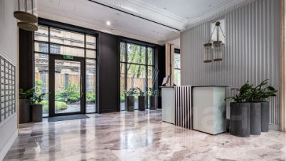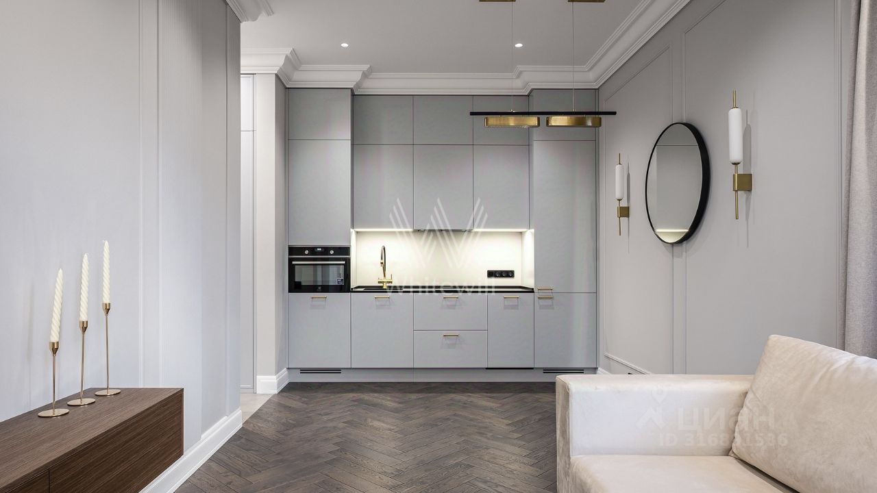Квартира с двумя спальнями площадью 55 м² в комплексе премиум-класса "Шаболовский" на 3-м этаже. Интерьер оформлен в современном стиле с преобладанием спокойных оттенков. Стены украшают декоративные молдинги и венчающий карниз.