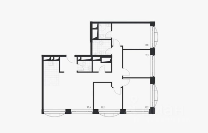 Об апартаментах: просторная кухня-гостинная, 4 изолированные комнаты, 2 совмещенных 1 раздельный с/у.