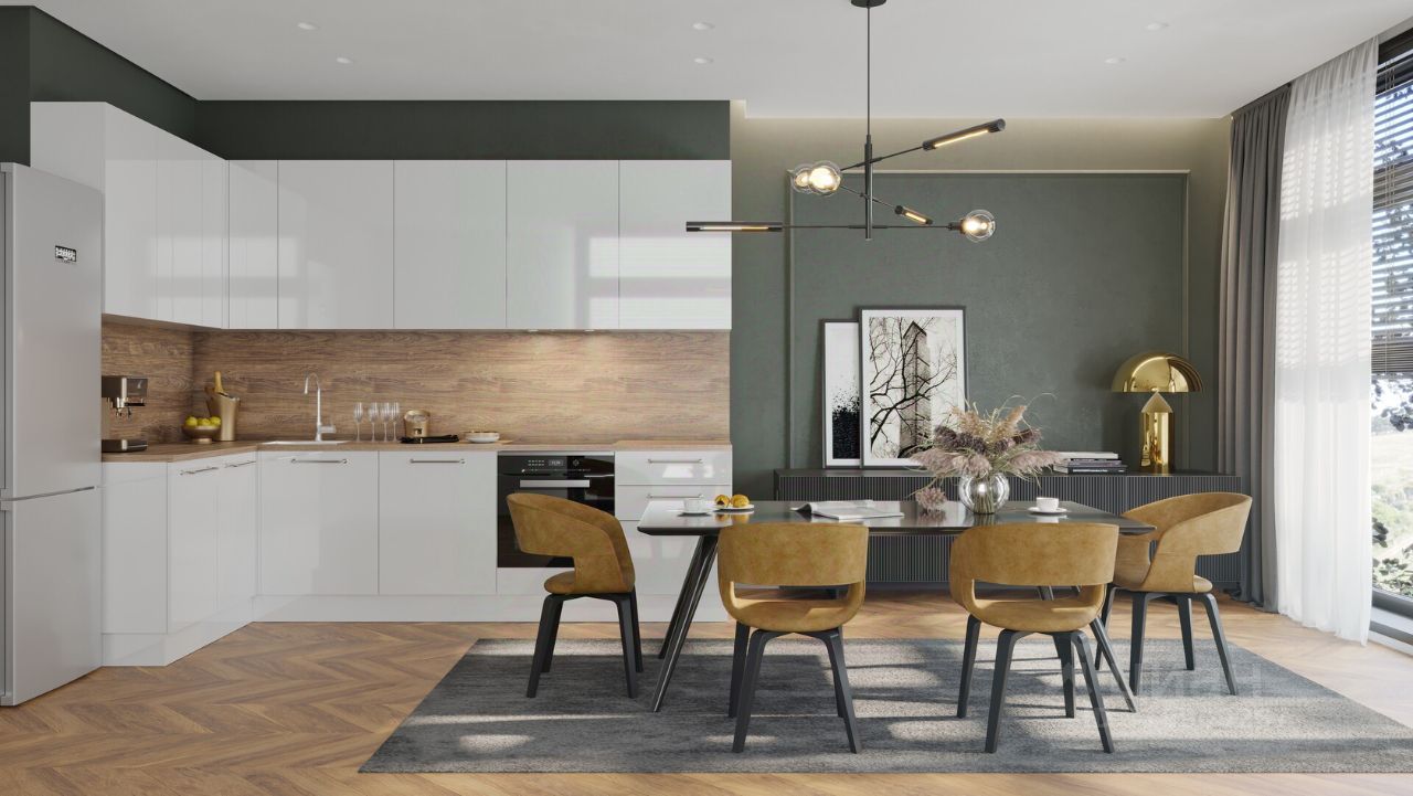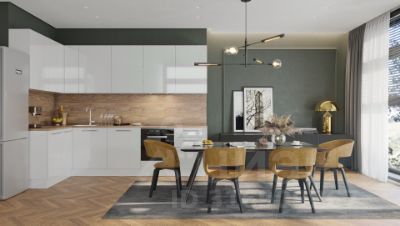 Просторная кухня 14 м2 с мебелью.