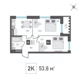 Продаётся 2-комнатная квартира в строящемся доме (Корпус 3), срок сдачи: IV-кв. 2026, общей площадью 53.8 кв.м., на 5 этаже. Жилой дом со встроенными нежилыми помещениями и подземной автостоянкой, расположенный по адресу: г. Москва, внутригородское муниципальное образование Матушкино, г. Зеленоград