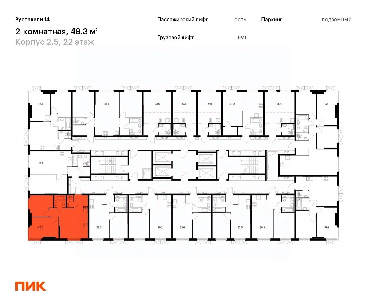 Продаётся 2-комн. квартира площадью 47,9 кв.м на 22 этаже 33 этажного дома (Корпус 2.5, Секция 1) проекта ПИК Руставели 14. Светлый просторный подъезд на уровне земли, функциональная планировка, большие окна, c отделкой.