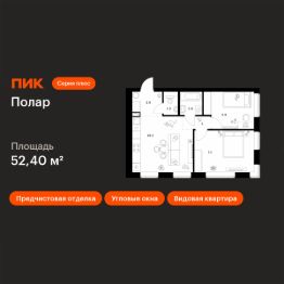 Продаётся 2-комн. квартира площадью 52,4 кв.м на 2 этаже 50 этажного дома (Корпус 1.5, Секция 2) проекта ПИК Полар. Светлый просторный подъезд на уровне земли, функциональная планировка, большие окна, предчистовая отделка.