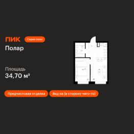 Продаётся 1-комн. квартира площадью 34,7 кв.м на 45 этаже 50 этажного дома (Корпус 1.5, Секция 2) проекта ПИК Полар. Светлый просторный подъезд на уровне земли, функциональная планировка, большие окна, предчистовая отделка.