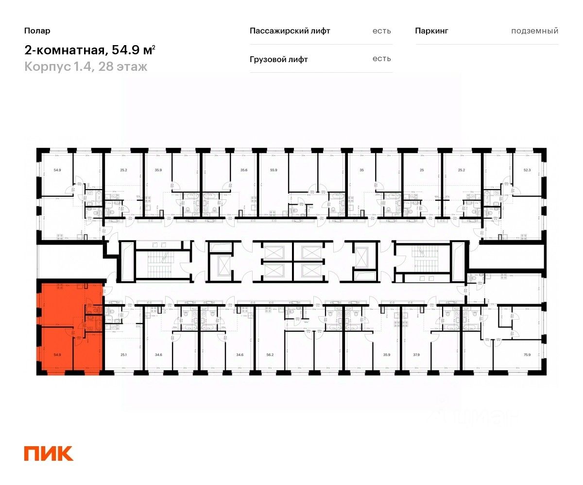 Продаётся 2-комн. квартира площадью 54,9 кв.м на 28 этаже 45 этажного дома (Корпус 1.4, Секция 1) проекта ПИК Полар. Светлый просторный подъезд на уровне земли, функциональная планировка, большие окна, c отделкой.