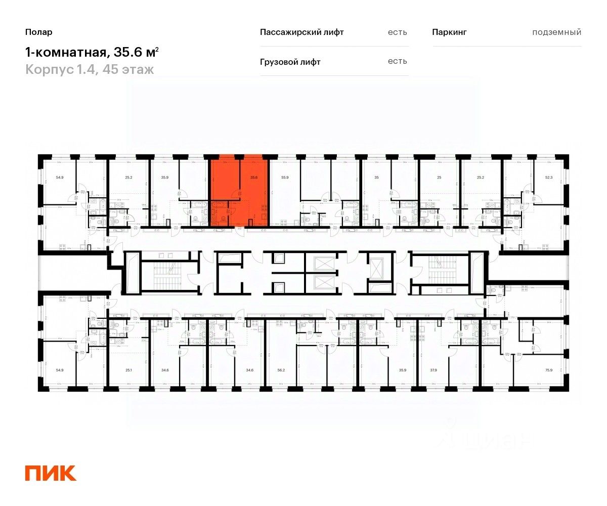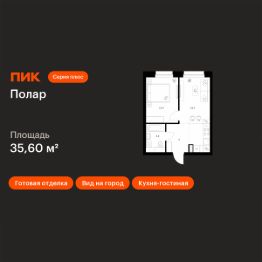 Продаётся 1-комн. квартира площадью 35,6 кв.м на 45 этаже 45 этажного дома (Корпус 1.4, Секция 1) проекта ПИК Полар. Светлый просторный подъезд на уровне земли, функциональная планировка, большие окна, c отделкой.