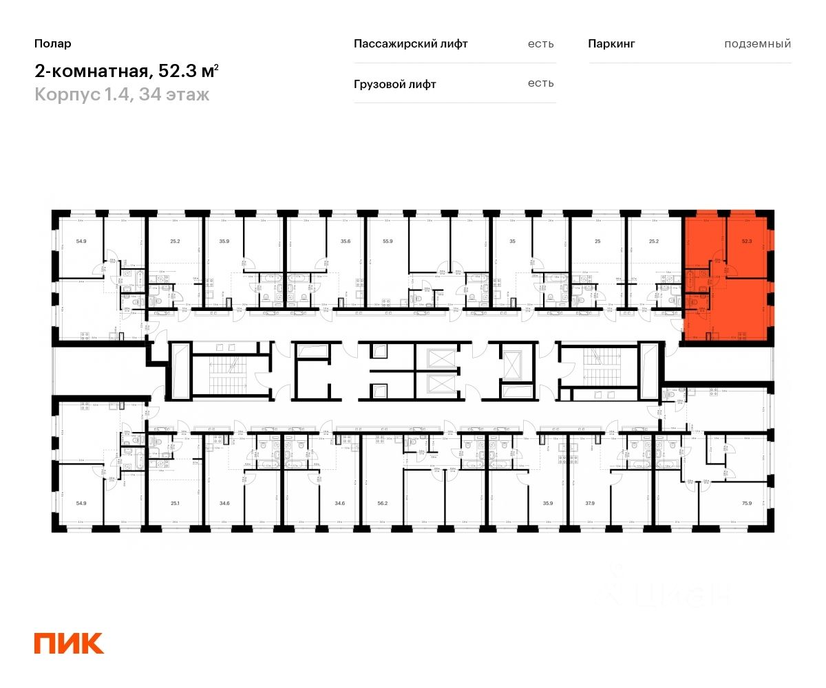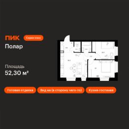 Продаётся 2-комн. квартира площадью 52,3 кв.м на 34 этаже 45 этажного дома (Корпус 1.4, Секция 1) проекта ПИК Полар. Светлый просторный подъезд на уровне земли, функциональная планировка, большие окна, c отделкой.