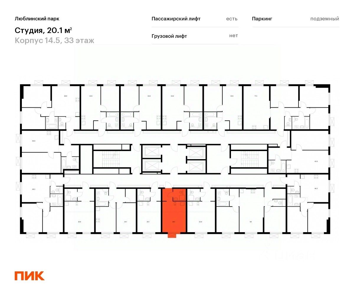 Продаётся квартира-студия площадью 20,1 кв.м на 33 этаже 33 этажного дома (Корпус 14.5, Секция 3) проекта ПИК Люблинский парк. Светлый просторный подъезд на уровне земли, функциональная планировка, большие окна, c отделкой.