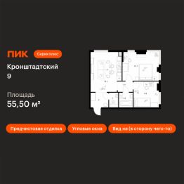 Продаётся 2-комн. квартира площадью 55,5 кв.м на 31 этаже 32 этажного дома (Корпус 1.1.3, Секция 3) проекта ПИК Кронштадтский 9. Светлый просторный подъезд на уровне земли, функциональная планировка, большие окна, предчистовая отделка.