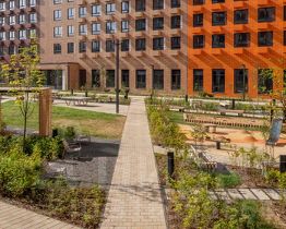 Проект состоит из корпусов с подземными паркингами, школа и детский сад. В зелёных дворах-парках будут места для отдыха, современные детские и спортивные площадки. На первых этажах откроются магазины, кафе и другие сервисы — за кофе и свежим хлебом к завтраку можно будет просто спуститься на лифте.