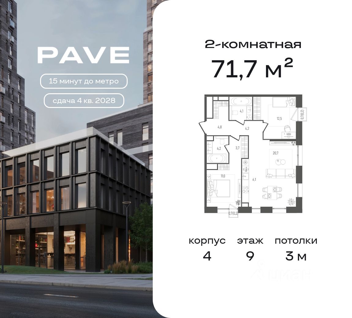 Проект бизнес-класса Pave от девелопера FORMA. Метро Павелецкая в пешей доступности, удобные выезды на ТТК и Садовое кольцо. Архитектура от бюро MAYAK. Благоустройство дворов — Magly. Приватный внутренний двор с водной гладью и местами для отдыха, коворкинг под открытым небом. Детские площадки с уникальным игровым оборудованием, спортивные площадки с зоной воркаут. Квартиры с панорамным джамбо остеклением, французскими балконами, террасами, мастер-спальнями и гардеробными. Высота потолков от 3,1 м. На последнем этаже пентхаусы с каминами и высотой потолков 3,6 м. Дизайнерское гранд-лобби для резидентов с фит-рум, коворкингом и общественной гостиной. Двухуровневый подземный паркинг и келлеры.