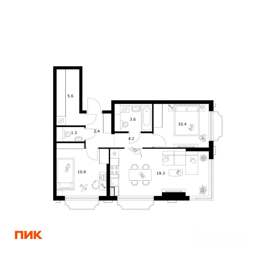 Продаётся 2-комн. квартира площадью 57,7 кв.м на 13 этаже 19 этажного дома (Корпус 1.2, Секция 2) проекта ПИК 2-й Иртышский. Светлый просторный подъезд на уровне земли, функциональная планировка, большие окна, c отделкой.