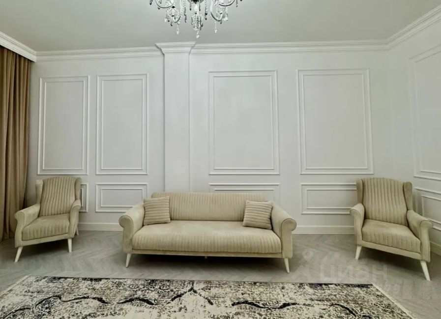О квартире: кухня, гостинная, 2 изолированные спальни, 2 гардеробные, 2 совмещенных и 1 раздельный с/у.