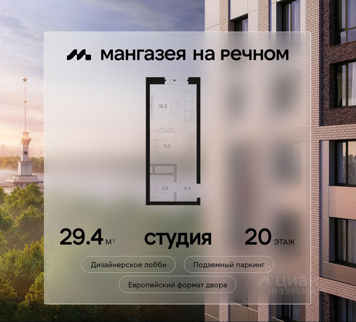В продаже студия площадью 29.4 м2. Функциональная планировка, кухня-гостиная, просторные санузел и гардеробная. Квартира расположена на 20-м этаже 24-этажного дома. Условия покупки: - Семейная ипотека от 3,5% на весь срок - Ипотека 0,11% на первый год - Рассрочка без процентов - Trade-in с проживанием на время строительства дома "Мангазея на Речном" расположена рядом с набережной, парками и территорией Северного речного вокзала. Первая очередь проекта два дома 12 и 24 этажа с приватным двором, ландшафтным благоустройством и инфраструктурой только для резидентов: кинозал, коворкинг, переговорные, зоны отдыха и комнаты для занятия фитнесом. Инфраструктура: - Школа на 1000 мест и детский сад - Дом Wellness со СПА-центром, фитнесом и массажными кабинетами и два бассейна, один из них под открытым небом - Два бассейна, один из них под открытым небом - Прогулочная набережная протяженностью 3,2 км с террасами - Зона воркаута и детские площадки - Ретейл, кафе, рестораны и бутики на первых этажах - Причалы для остановки яхт и небольших катеров Транспортная доступность: - 10 минут пешком до м. Речной вокзал - 15 минут пешком до м. Беломорская - 15 минут на машине до Белорусского вокзала - 17 минут на машине до Садового Кольца В первых корпусах "Мангазеи на Речном" представлены квартиры бизнес-класса с мастер-спальнями, террасами и видами на парк. Эксклюзивные форматы лоты с увеличенной высотой потолков и собственными выходом на благоустроенную территорию.