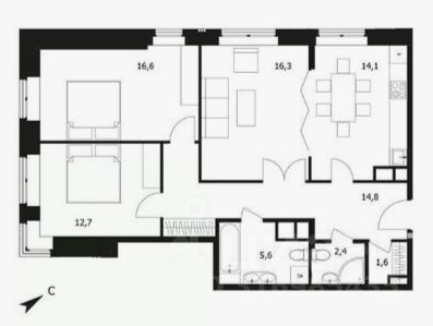 О квартире: 2 изолированные спальни, просторная кухня-гостинная, 2 совмещенных с/у. Квартира без отделки.
