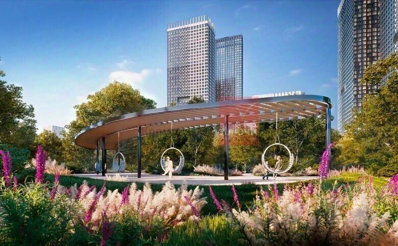 Встроенная школа, детский сад, более 15 000 м² коммерческой инфраструктуры.