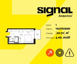Продаются уютные однокомнатные апартаменты на 9 этаже 23-этажного современного апарт-комплекса Signal. Срок сдачи: 4 кв. 2026 г.