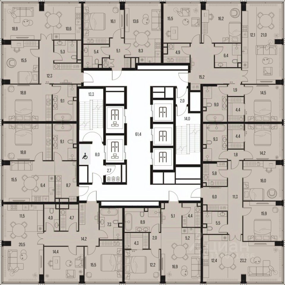 2-к квартира квартира в премиальном комплексе HIGH LIFE на 18-м этаже в 47 этажном здании. Общая площадь 58.5 кв. м.