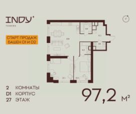 Продается просторная 2-комнатная квартира на 27 этаже жилого комплекса Indy Towers. Срок сдачи: 3 кв. 2029 г.
