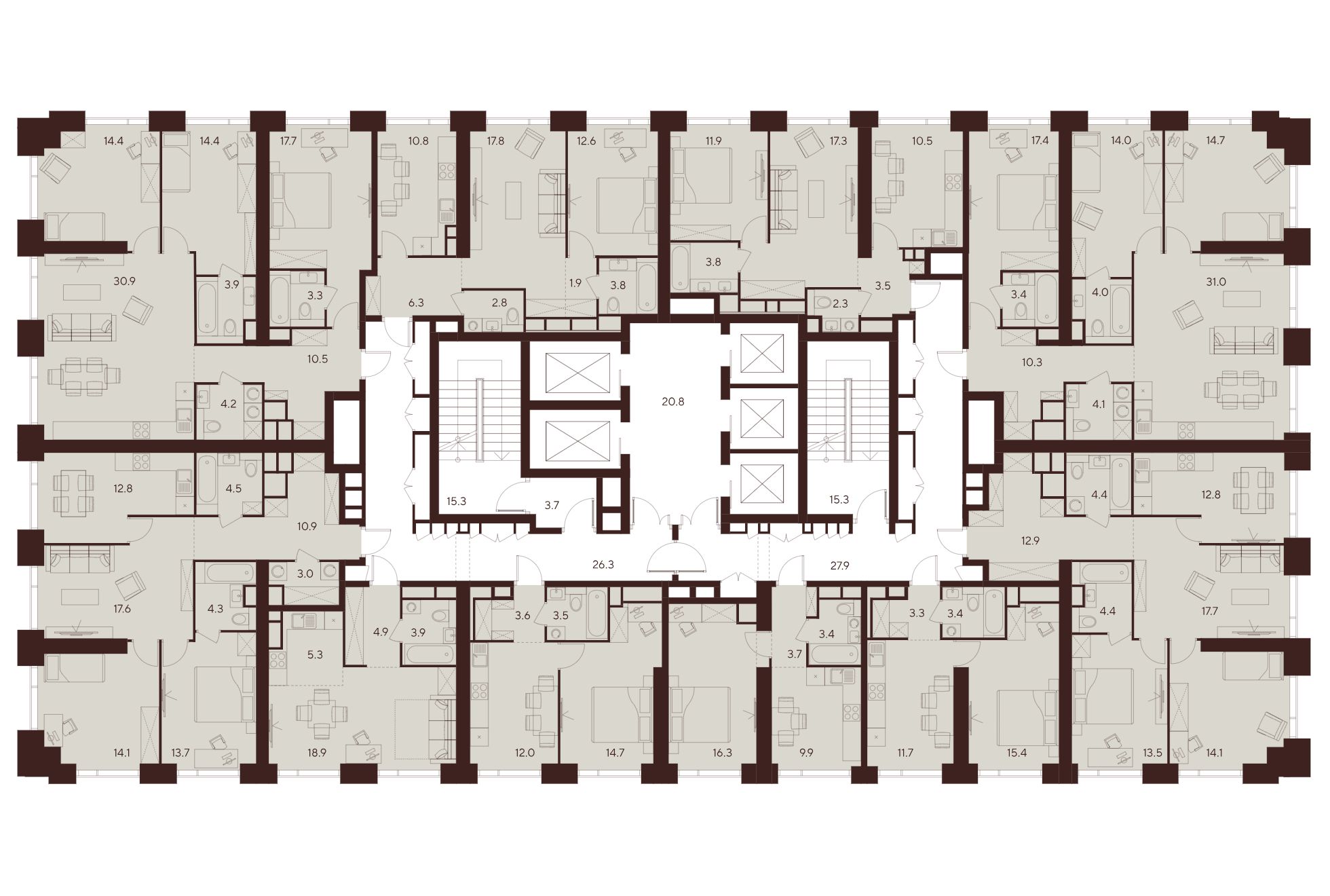 Продается просторная 3-комнатная квартира на 31 этаже жилого комплекса Indy Towers. Срок сдачи: 3 кв. 2029 г.