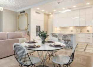 В квартире несколько лет назад произведен капитальный дизайнерский ремонт, на полу инженерная доска и керамогранит, стены под покрас, в холле и на кухне оборудованы теплые полы, система кондиционирования воздуха- общедомовая + кондиционеры и сплит-система Daikin. Двери фирмы Union, сантехника Villeroy&boch, смесители Hangsgrohe. В гостинной пано из натурального Оникса с подсветкой. Квартира полностью меблирована и оборудована необходимой бытовой техникой- посудомоечная, сушильная и стиральная машина фирмы Miele, СВЧ, духовой шкаф и индукционная плита фирмы Zug, мягкая мебель Mobel and zeit.